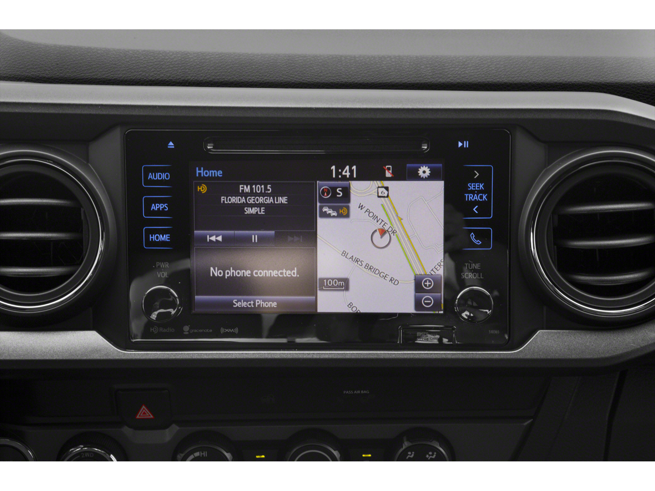 • Radio: Entune (subscription required) Premium w/AM/FM/CD/Nav/App Suite -inc: 6 speakers, 7" high-resolution touch-screen display w/split screen, auxiliary port, USB media port, Siri eyes free, advanced voice recognition, Bluetooth® hands-free phone capability, phone book access and music streaming, cache radio, HD Radio, HD predictive traffic and doppler weather overlay and SiriusXM satellite radio (subscription required) w/complimentary SiriusXM All Access, Entune (subscription required) App Suite, Destination Search, iHeartRadio, MovieTickets.com, OpenTable, Pandora, Yelp, Facebook Places and Slacker Radio