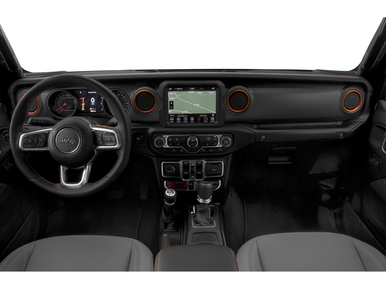 This vehicle comes equipped with: 8.4 Radio & Premium Audio Group (1-Year SiriusXM Guardian Trial, 5-Year SiriusXM Traffic Service, 5-Year SiriusXM Travel Link Service, 8.4 Touchscreen Display, Alpine Premium Audio System, Auto-Dimming Rear-View Mirror, Emergency/Assistance Call, For Details, Visit DriveUconnect.com, GPS Navigation, HD Radio, Radio: Uconnect 4C Nav w/8.4 Display, SiriusXM Traffic Plus, and SiriusXM Travel Link), Auxiliary Switch Group (240 Amp Alternator, 700 Amp Maintenance Free Battery, and Auxiliary Switches), Cold Weather Group (Heated Front Seats and Heated Steering Wheel), LED Lighting Group (Daytime Running Lamps LED Accents, Front LED Fog Lamps, LED Park Turn Lamps, LED Premium Reflector Headlamps, and LED Taillamps), Quick Order Package 24D, Safety Group (Blind Spot & Cross Path Detection and ParkSense Rear Park Assist System), Trailer Tow Package (Class IV Hitch Receiver, Heavy-Duty Engine Cooling, and Trailer Hitch Zoom), 4-Wheel Disc Brakes, 4.10 Rear Axle Ratio, 8 Speakers, 97 mph Maximum Speed Calibration, ABS brakes, Air Conditioning, Alloy wheels, AM/FM radio: SiriusXM, Apple CarPlay/Android Auto, Automatic temperature control, Black 3-Piece Hard Top, Brake assist, Compass, Delay-off headlights, Driver door bin, Driver vanity mirror, Dual front impact airbags, Dual front side impact airbags, Electronic Stability Control, Freedom Panel Storage Bag, Front anti-roll bar, Front Bucket Seats, Front Center Armrest w/Storage, Front dual zone A/C, Front fog lights, Front License Plate Bracket, Front reading lights, Fully automatic headlights, Garage door transmitter, Heated door mirrors, Heavy Duty Suspension w/Gas Shocks, Illuminated entry, Integrated Off-Road Camera, Integrated roll-over protection, Leather steering wheel, Low tire pressure warning, MOPAR All-Weather Floor Mats (DISC), MOPAR Spray In Bedliner, Occupant sensing airbag, Outside temperature display, Panic alarm, ParkView Rear Back-Up Camera, Passenger door bin, Passenger vanity mirror, Power door mirrors, Power steering, Power windows, Premium Cloth Seats w/Sport Bolsters, Radio data system, Radio: Uconnect 4 w/7 Display, Rear anti-roll bar, Rear reading lights, Rear Sliding Window, Rear Window Defroster, Remote keyless entry, Remote Start System, Security system, Speed control, Split folding rear seat, Steering wheel mounted audio controls, Tachometer, Telescoping steering wheel, Tilt steering wheel, Traction control, Trip computer, Variably intermittent wipers, Voltmeter, and Wheels: 17 x 7.5 Low Gloss Black AluminuM.