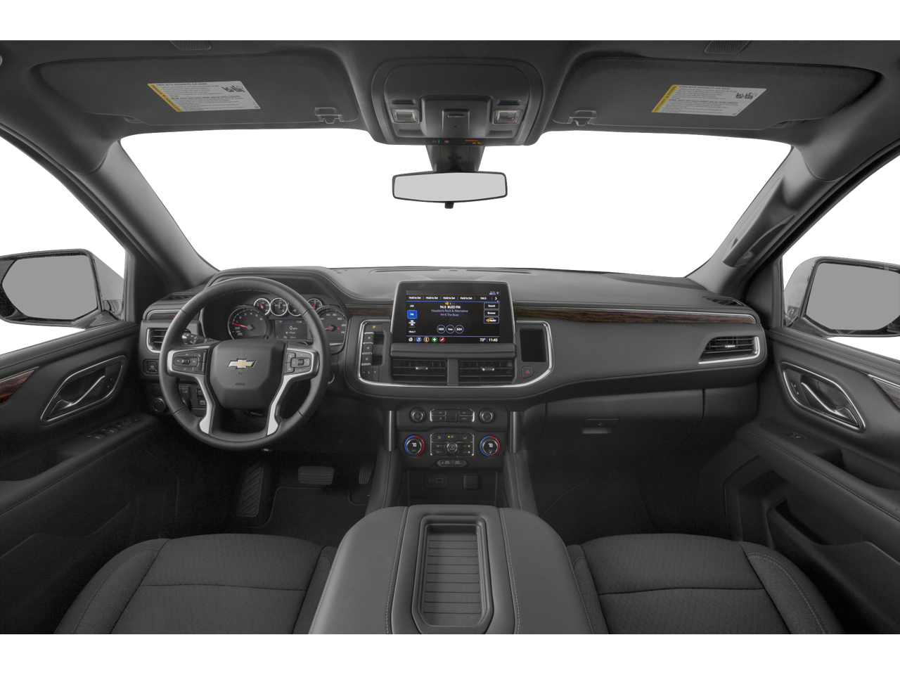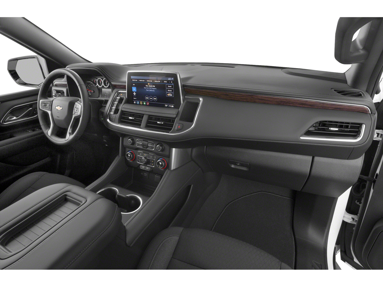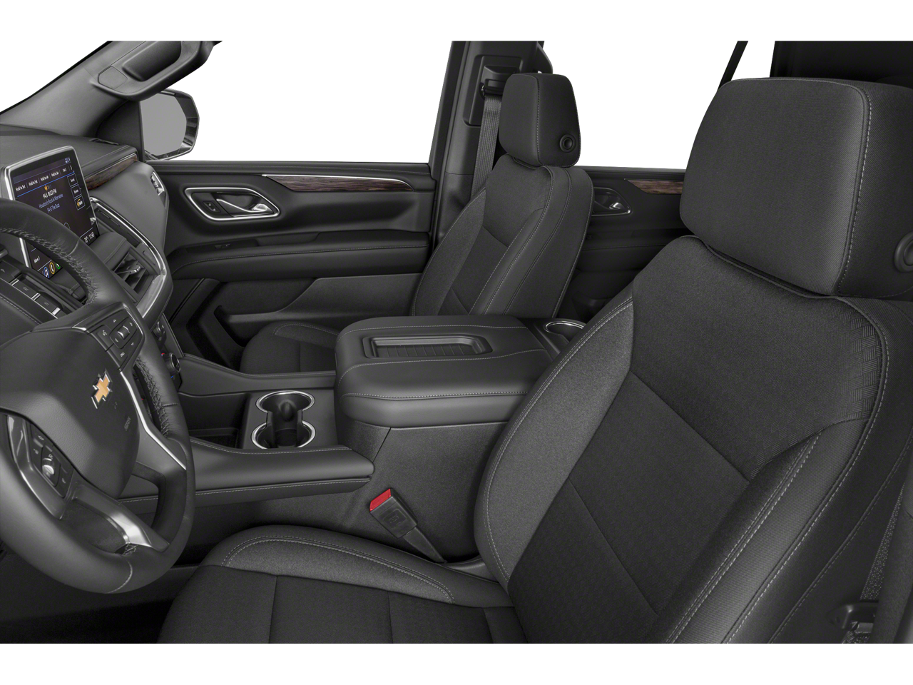 This Vehicle is nicely equipped with the following features: Preferred Equipment Group 1LS (1st & 2nd Row Color-Keyed Carpeted Floor Mats, Automatic Stop/Start, Color-Keyed Carpeting Floor Covering, Driver & Front Outboard Passenger Airbags, Floor Console w/Storage Area, Leather-Wrapped Steering Wheel, LED Daytime Running Lamps, Remote Start, SiriusXM Radio w/360L, and Start/Stop System Disable Button), Jet Black Cloth, 3.23 Rear Axle Ratio, 3rd row seats: split-bench, 4-Wheel Disc Brakes, 6 Speakers, 6-Speaker Audio System Feature, ABS brakes, Air Conditioning, All-Weather Cargo Mat (LPO), All-Weather Floor Mats, Alloy wheels, AM/FM radio: SiriusXM with 360L, Apple CarPlay/Android Auto, Auto High-beam Headlights, Automatic temperature control, Black Exhaust Tip (LPO), Black Name Plates (LPO), Brake assist, Bumpers: body-color, Compass, Delay-off headlights, Driver door bin, Driver vanity mirror, Dual front impact airbags, Dual front side impact airbags, Electronic Stability Control, Emergency communication system: OnStar and Chevrolet connected services capable, Four wheel independent suspension, Front & Rear Black Bowtie Emblems (LPO), Front anti-roll bar, Front Bucket Seats, Front Center Armrest, Front dual zone A/C, Front High-Back Reclining Bucket Seats, Front reading lights, Fully automatic headlights, Heated door mirrors, Illuminated entry, Infotainment Display, Leather steering wheel, Low tire pressure warning, Not Equipped w/Steering Column Lock, Occupant sensing airbag, Outside temperature display, Overhead airbag, Overhead console, Panic alarm, Passenger door bin, Passenger vanity mirror, Power door mirrors, Power driver seat, Power passenger seat, Power steering, Power windows, Premium audio system: Chevrolet Infotainment System 3, Premium Cloth Seat Trim, Premium Smooth Ride Suspension, Radio: Chevrolet Infotainment 3 System, Rain sensing wipers, Rear air conditioning, Rear anti-roll bar, Rear reading lights, Rear seat center armrest, Rear window defroster, Rear window wiper, Remote keyless entry, Roof rack: rails only, Security system, Speed control, Speed-sensing steering, Split folding rear seat, Spoiler, Steering wheel mounted audio controls, Tachometer, Telescoping steering wheel, Tilt steering wheel, Traction control, Trip computer, Variably intermittent wipers, Voltmeter, Wheels: 18 x 8.5 Bright Silver Painted Aluminum, and Wheels: 20 x 9 Painted Aluminum.