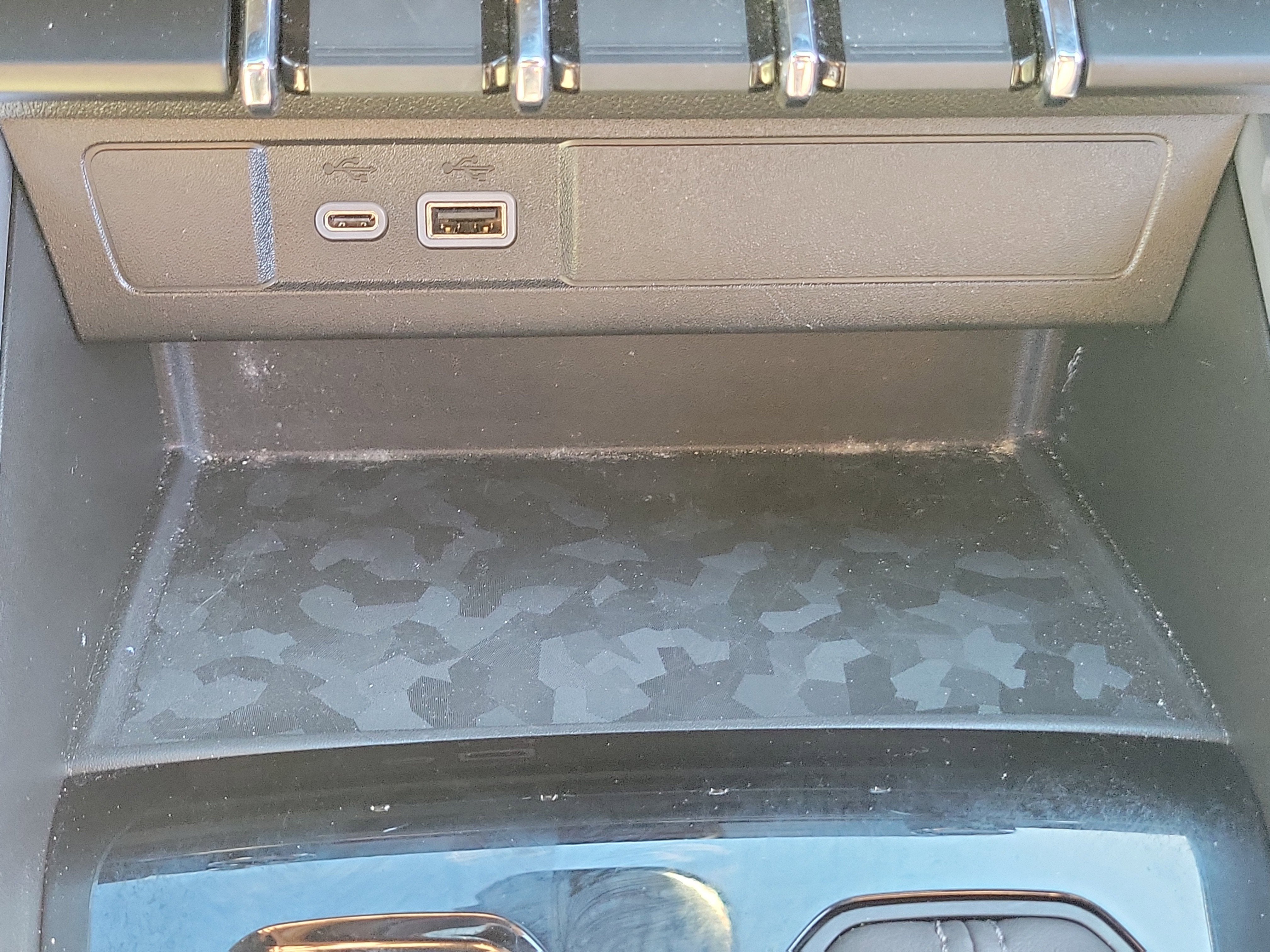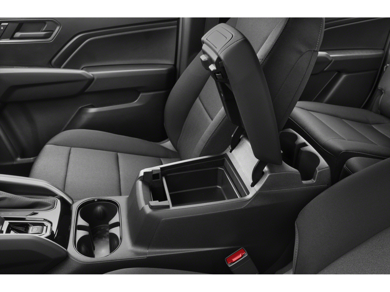 - Console, floor front compartment with cup holders and cell phone storage