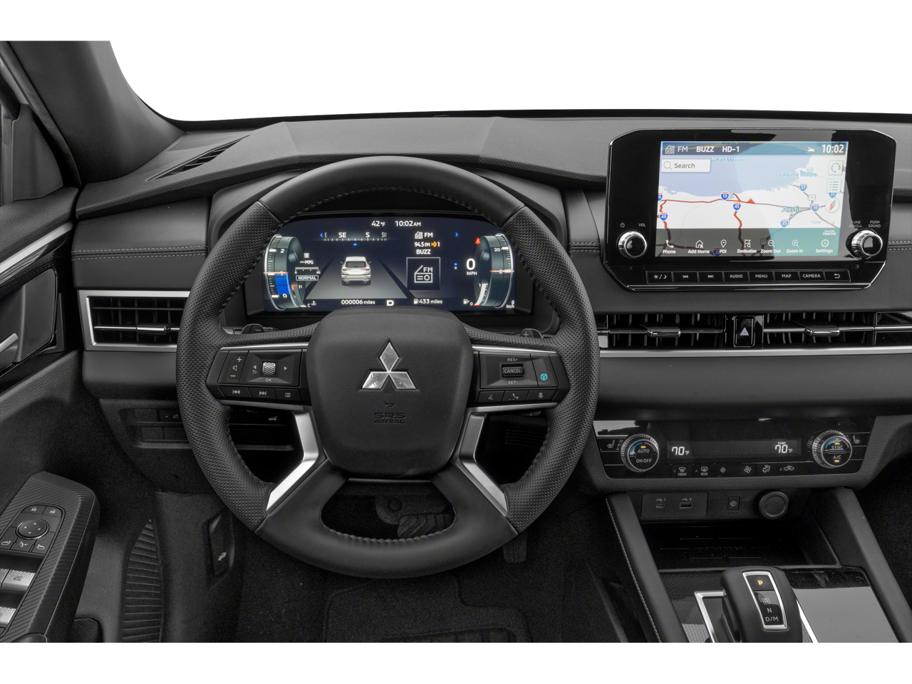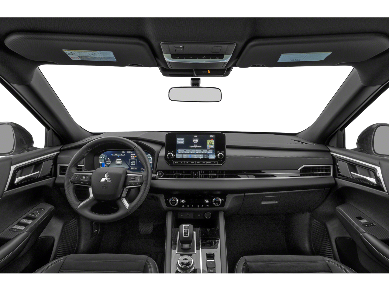 This vehicle comes equipped with : 3rd row seats: split-bench, 4-Wheel Disc Brakes, 5.694 Axle Ratio, 6 Speakers, ABS brakes, Air Conditioning, Alloy wheels, AM/FM radio: SiriusXM, Android Auto & Apple CarPlay, Auto High-beam Headlights, Automatic temperature control, Brake assist, Bumpers: body-color, Driver door bin, Driver vanity mirror, Dual front impact airbags, Dual front side impact airbags, Electronic Stability Control, Emergency communication system: Mitsubishi Connect w/ 24-month trial, Exterior Parking Camera Rear, Four wheel independent suspension, Front anti-roll bar, Front Bucket Seats, Front Center Armrest w/Storage, Front dual zone A/C, Front fog lights, Front reading lights, Fully automatic headlights, Heated door mirrors, Heated Front Bucket Seats, Heated front seats, Illuminated entry, Knee airbag, Leather Shift Knob, Leather steering wheel, Low tire pressure warning, Navigation System, Occupant sensing airbag, Outside temperature display, Overhead airbag, Overhead console, Panic alarm, Passenger door bin, Passenger vanity mirror, Power door mirrors, Power driver seat, Power Liftgate, Power steering, Power windows, Radio data system, Radio: AM/FM 9.0" Navigation w/Smartphone Link, Rain sensing wipers, Rear anti-roll bar, Rear seat center armrest, Rear side impact airbag, Rear window defroster, Rear window wiper, Reclining 3rd row seat, Remote keyless entry, Security system, Speed control, Speed-Sensitive Wipers, Split folding rear seat, Spoiler, Steering wheel mounted audio controls, Synthetic Leather Seat Trim, Tachometer, Telescoping steering wheel, Tilt steering wheel, Traction control, Trip computer, Turn signal indicator mirrors, and Variably intermittent wipers.