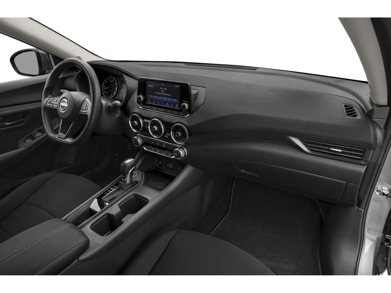 This vehicle comes equipped with: CVT with Xtronic, Charcoal Cloth, 16 Steel Wheels w/Full Wheel Covers, 4 Speakers, ABS brakes, Air Conditioning, AM/FM radio, Auto High-beam Headlights, Blind Spot Warning, Brake assist, Bumpers: body-color, Cloth Seat Trim, Delay-off headlights, Driver door bin, Driver vanity mirror, Dual front impact airbags, Dual front side impact airbags, Electronic Stability Control, Four wheel independent suspension, Front anti-roll bar, Front Bucket Seats, Front Center Armrest, Front reading lights, Fully automatic headlights, Illuminated entry, Knee airbag, Low tire pressure warning, NissanConnect featuring Apple CarPlay and Android Auto, Occupant sensing airbag, Outside temperature display, Overhead airbag, Overhead console, Panic alarm, Passenger door bin, Passenger vanity mirror, Power door mirrors, Power steering, Power windows, Radio data system, Radio: AM/FM w/RDS/MP3/Aux-In, Rear anti-roll bar, Rear Parking Sensors, Rear side impact airbag, Rear window defroster, Remote keyless entry, Speed control, Speed-sensing steering, Split folding rear seat, Steering wheel mounted audio controls, Tachometer, Telescoping steering wheel, Tilt steering wheel, Traction control, Trip computer, and Variably intermittent wipers.