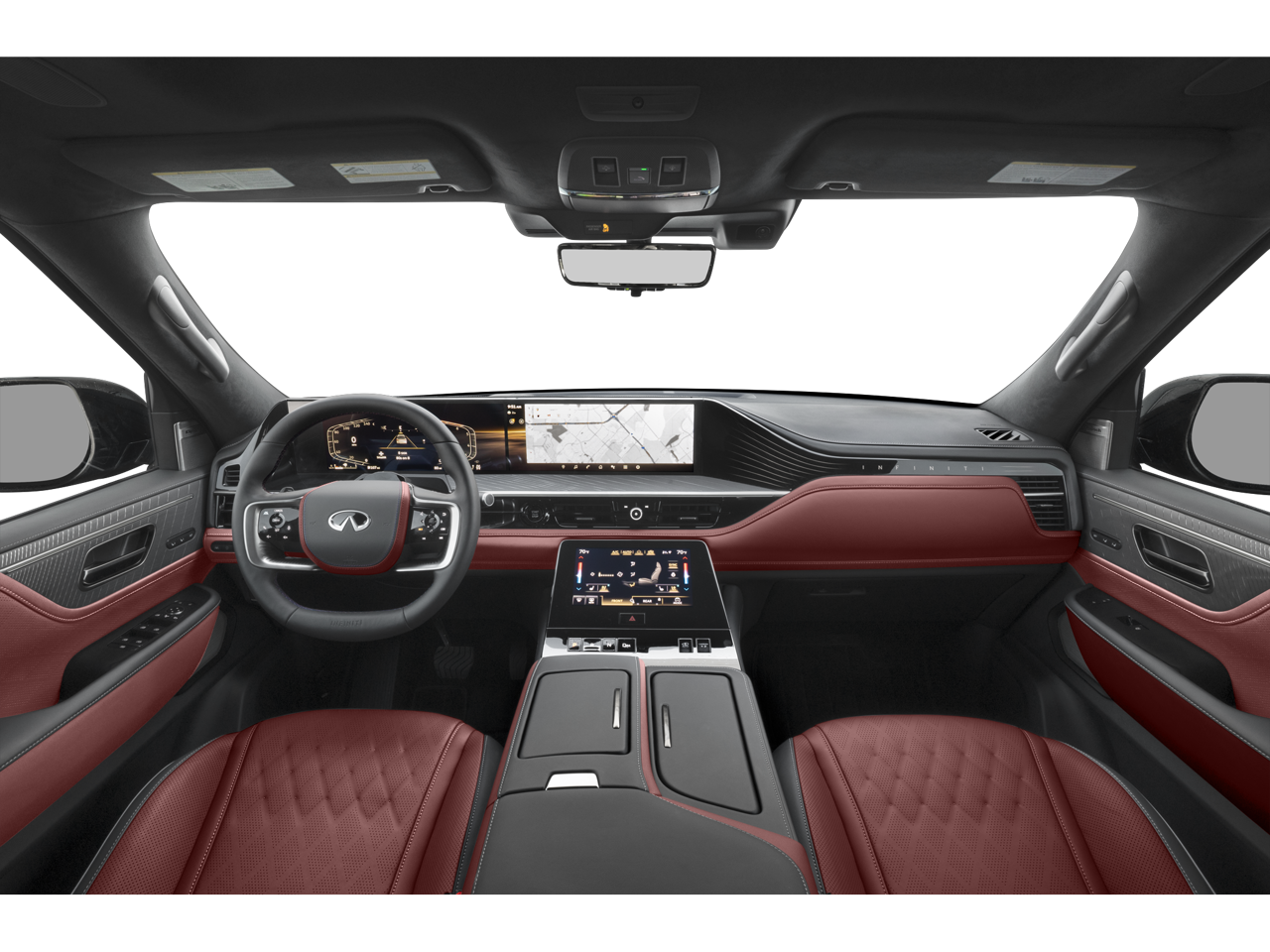 - Radio: Klipsch Reference Premiere Audio System -inc: 24-speakers, 3D audio, Active Sound Enhancement (ASE), demo mode, individual audio headrest speakers for driver and front passenger, INFINITI InTouch services, 4G Wi-Fi hotspot, dual 14.3" infotainment screens w/9" front control panel, Google built-in w/navigation, Amazon Alexa built-in w/hotword, Bluetooth® hands free phone and audio streaming, wireless Apple CarPlay and Android Auto, hybrid radio, SiriusXM w/360L (3-month trial included) and 2 USB type-C ports