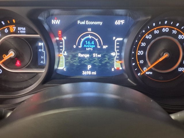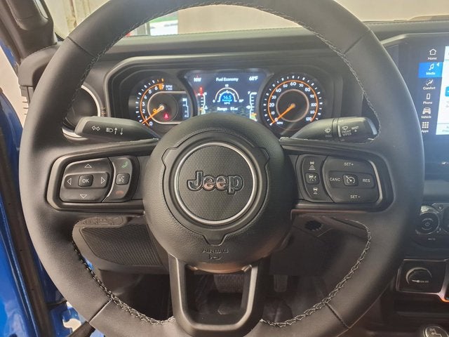 This vehicle comes equipped with: Convenience Group (Corning Gorilla Glass, Daytime Running Lamp System, Emergency/Assistance Call, Front Door Locks 2-Door Passive Entry, Heated Front Seats, Heated Steering Wheel, Remote Start System, and Universal Garage Door Opener), Quick Order Package 24J Texas Trail (97 MPH Vehicle Max Speed Calibration, Advanced Brake Assist, Automatic Headlamps, Body Color 3-Piece Hard Top, Body Color Fender Flares (2-Piece), Deep Tint Sunscreen Windows, Freedom Panel Storage Bag, Full Length Floor Console Premium Armrest, Full Speed Forward Collision Warning Plus, Hard Seat Back, Integrated Radar Camera Module (IRCM), Leather Wrapped Park Brake Handle, Leather Wrapped Shift Knob, Power 4-Way Driver Lumbar Adjust, Power 4-Way Passenger Lumbar Adjust, Power Adjust 8-Way Driver Seat, Power Adjust 8-Way Front Passenger Seat, Power Heated Mirrors, Premium Door Trim Panel, Premium McKinley Trimmed Seats, Premium Wrapped Steering Wheel, Rear Armrest w/Cupholder Seat, Rear Sliding Window, Rear Window Defroster, Security Alarm, Sun Visors w/Illuminated Vanity Mirrors, Texas Trail, Texas Trail Tailgate & Hood Decals, Wheels: 17 x 7.5 Painted Black, and Willys Suspension), 110 MPH Vehicle Max Speed Calibration, 12.3 Touchscreen Display, 3.73 Rear Axle Ratio, 4-Wheel Disc Brakes, 4G LTE Wi-Fi Hot Spot, 8 Speakers, ABS brakes, Air Conditioning, Alexa Built-In, AM/FM radio: SiriusXM, Apple CarPlay, Apple CarPlay/Android Auto, Brake assist, Cloth Low-Back Bucket Seats, Compass, Connectivity - US/Canada, Delay-off headlights, Driver door bin, Driver vanity mirror, Dual front impact airbags, Dual front side impact airbags, Electronic Stability Control, Front anti-roll bar, Front Bucket Seats, Front Center Armrest w/Storage, Front fog lights, Front License Plate Bracket, Front reading lights, Google Android Auto, Illuminated entry, Integrated roll-over protection, Low tire pressure warning, MOPAR All-Weather Slush Mats, MOPAR Spray In Bedliner, Normal Duty Suspension, Occupant sensing airbag, Outside temperature display, Overhead airbag, Panic alarm, ParkView Rear Back-Up Camera, Passenger door bin, Passenger vanity mirror, Power steering, Power windows, Radio data system, Radio: Uconnect 5 w/12.3 Display, Rear anti-roll bar, Rear reading lights, Remote keyless entry, Side Steps, Speed control, Split folding rear seat, Steering wheel mounted audio controls, Tachometer, Telescoping steering wheel, Tilt steering wheel, Traction control, Trip computer, USB Host Flip, Variably intermittent wipers, Voltmeter, and Wheels: 17 x 7.5 Black Steel Styled.