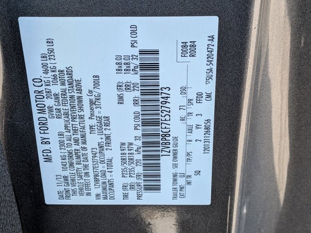 This vehicle comes equipped with : 18" x 8" Sparkle Silver Painted Aluminum Wheels, 4-Wheel Disc Brakes, ABS brakes, Air Conditioning, Alloy wheels, Brake assist, Bumpers: body-color, CD player, Compass, Delay-off headlights, Driver door bin, Driver vanity mirror, Dual front impact airbags, Dual front side impact airbags, Electronic Stability Control, Front anti-roll bar, Front Bucket Seats, Front Center Armrest, Front fog lights, Front reading lights, Front wheel independent suspension, Fully automatic headlights, High-Intensity Discharge Headlights, Illuminated entry, Low tire pressure warning, Occupant sensing airbag, Outside temperature display, Panic alarm, Passenger door bin, Passenger vanity mirror, Power door mirrors, Power steering, Power windows, Premium AM/FM Stereo w/Single CD/Clock, Radio data system, Rear anti-roll bar, Rear window defroster, Remote keyless entry, Speed control, Speed-sensing steering, Split folding rear seat, Spoiler, Steering wheel mounted audio controls, SYNC Communications & Entertainment System, Tachometer, Tilt steering wheel, Traction control, Trip computer, and Variably intermittent wipers.